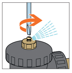 W celu odpowietrzenia należy odkręcić śrubę znajdującą się w górnej części urządzenia za pomocą śrubokrętu lub klucza motylkowego.