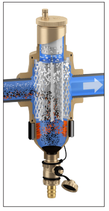 Separator powietrza-zanieczyszczeń wyposażony w magnes pozwala z wysoką sprawnością na separację i gromadzenie zanieczyszczeń ferromagnetycznych. Zanieczyszczenia tego typu wychwytywane są za pomocą silnego pola magnetycznego wytwarzanego przez magnesy umieszczone w specjalnym zewnętrznym pierścieniu. Zewnętrzny pierścień może zostać zdjęty w celu usunięcia zgromadzonych osadów nawet podczas normalnej pracy instalacji. Ponieważ magnes został umieszczony na zewnątrz urządzenia nie ma on wpływu na jego charakterystykę hydrauliczną.
