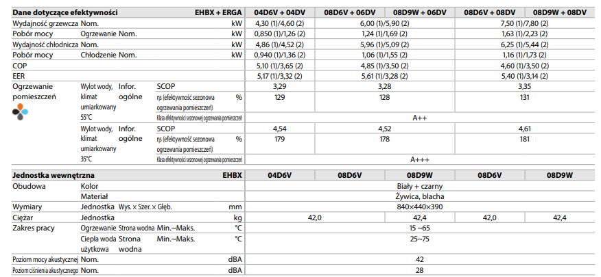 - efektywność ogrzewania aż do COP na poziomie 5,1 (w temp. 7°C/35°C)