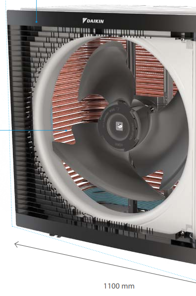 Inżynierowie Daikin wymienili dwa wentylatory na jeden większy i zoptymalizowali jego kształt, aby obniżyć poziom głośności i poprawić cyrkulację powietrza.