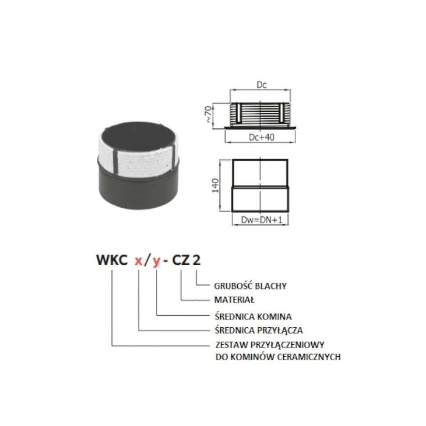 Wkładka zabezpiecza trójnik komina ceramicznego przed uszkodzeniami powstałymi na wskutek rozszerzalności cieplnej metalu.