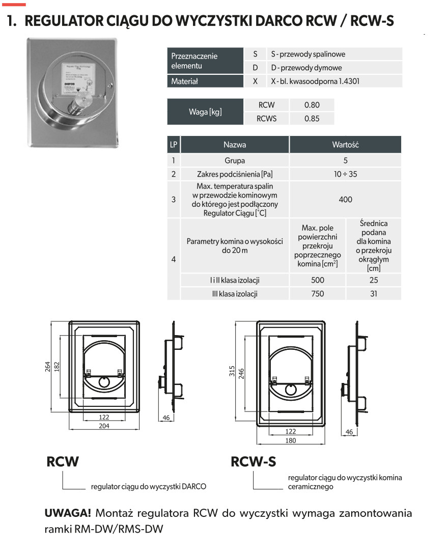 DARCO REGULATOR CIĄGU DO WYCZYSTKI RCW 125x185 MM