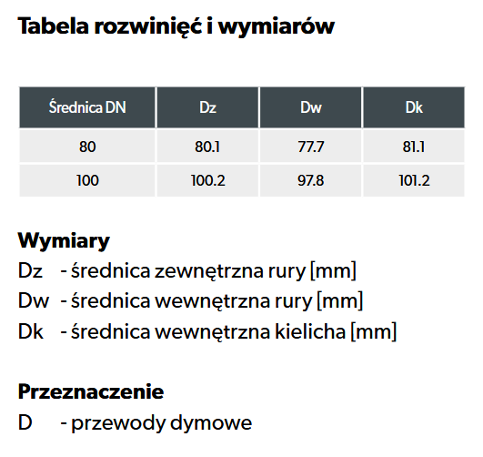 System służy do budowy przyłączy kominowych, wykonanych w całości ze stali czarnej o grubości 1,2 mm w gatunku DC01. Zalecany do odprowadzania spalin z kominków lub urządzeń grzewczych na pelet. System Przyłączy Kominowych <SPKP> może być zastosowany jako przyłącze do kotłów odprowadzających spaliny, których temperatura może dochodzić do 250°C. Maksymalna temperatura pracy ciągłej: 250°C