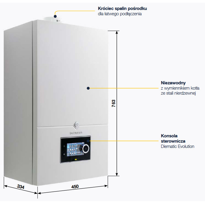 - W dostawie króciec powietrzno-spalinowy Ø60/100 mm