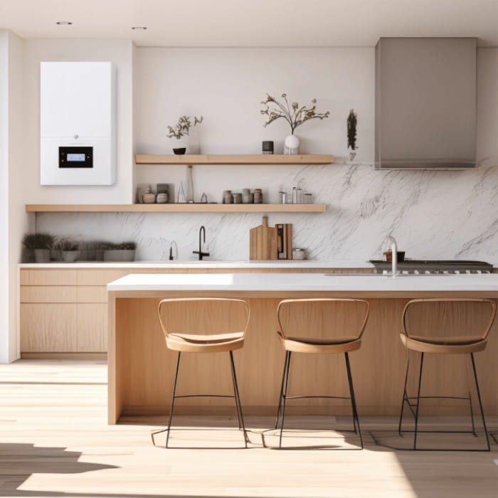 - Naścienny gazowy kocioł kondensacyjny przystosowany do spalania gazu z 20% domieszką wodoru
