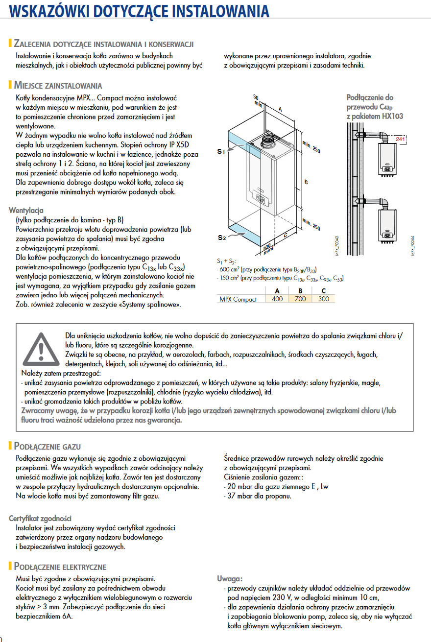 Kotły MPX Compact... są dostarczane zmontowane i przetestowane fabrycznie. Wyposażane są wstępnie do pracy z gazem ziemnym lub propanem.
