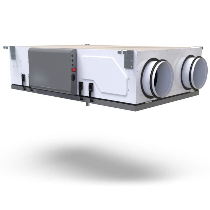 | Wyposażenie opcjonalne - za dopłatą | Moduł komunikacji internetowej ST-505 (LAN) lub moduł komunikacji internetowej WiFi RS. Dodatkowo możliwość wyposażenie w czujnik CO₂ i czujnik wilgotności HR oraz zestaw odpływu skroplin. Możliwość wykorzystania elementów do montażu sufitowego: konsola montażowa podwieszana do rekuperatora lub na podstawie pod rekuperator. |