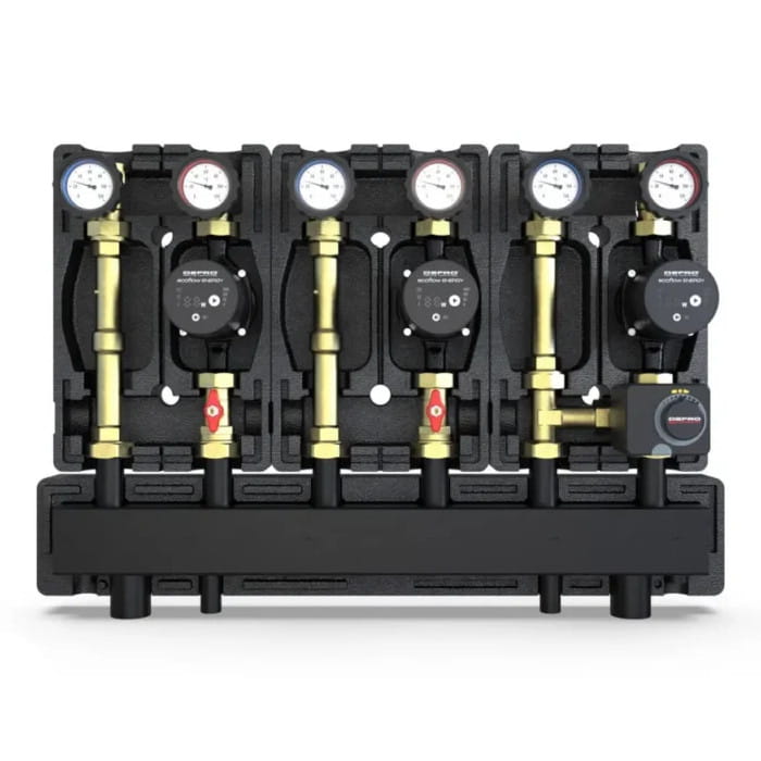 DEFRO DZGP-ECF-06 GOTOWY ZESTAW POMPOWY TRÓJOBIEGOWY Z ROZDZIELACZEM - 2X GRUPA BEZPOŚREDNIA, 1X GRUPA MIESZAJĄCA - POMPY DEFRO ECOFLOW ENERGY