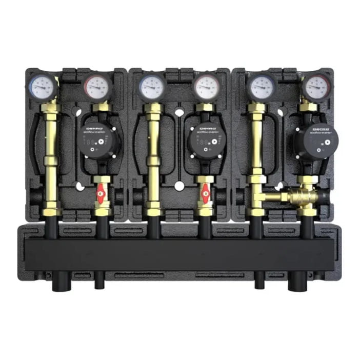 DEFRO DZGP-ECF-10 GOTOWY ZESTAW POMPOWY TRÓJOBIEGOWY Z ROZDZIELACZEM - 2X GRUPA BEZPOŚREDNIA, 1X GRUPA Z ZAWOREM TERMOSTATYCZNYM - POMPY DEFRO ECOFLOW ENERGY