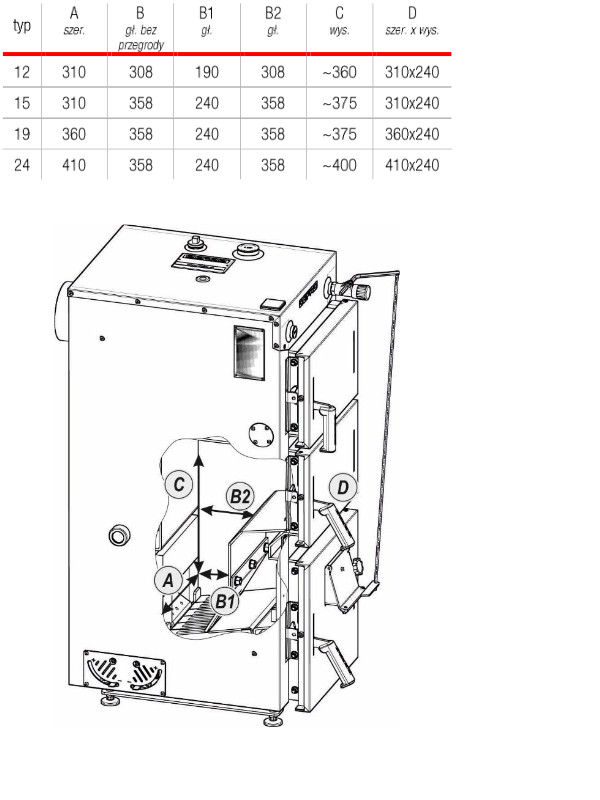 Duże i wygodne wymiary komory zasypowej oraz drzwiczek załadunkowych |