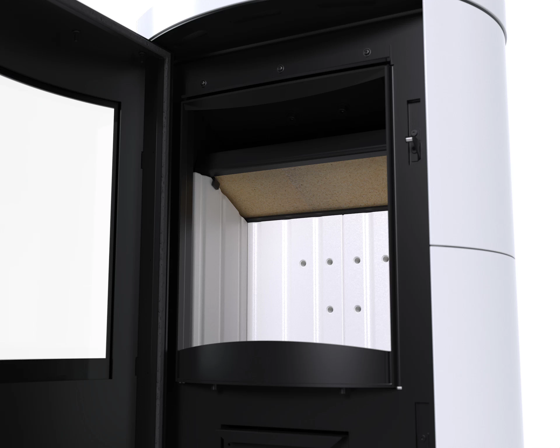 Wnętrze wyłożono żaroodpornymi panelami z betonu ceramicznego (ceramiton), które dodatkowo wzmacniają proces spalania i utrzymują stałą temperaturę w komorze.