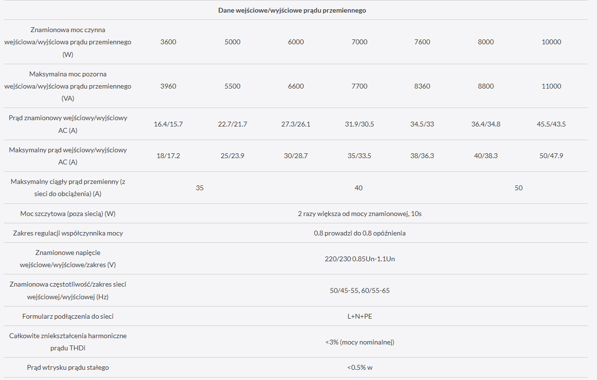 • Maksymalnie 16 sztuk równolegle do pracy w sieci i poza nią; Obsługa wielu baterii połączonych równolegle