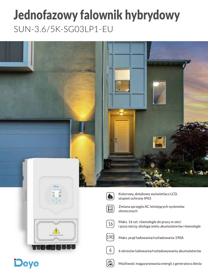 DEYE FALOWNIK HYBRYDOWY 1FZ 5 KW SUN-5K-SG03LP1-EU