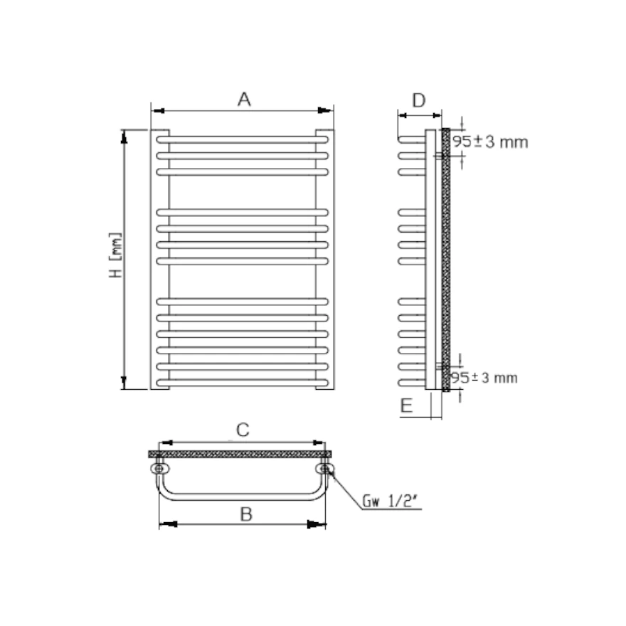 | KOD GRZEJNIKA | H [mm] | A [mm] | B [mm] | C [mm] | D [mm] | E [mm] |