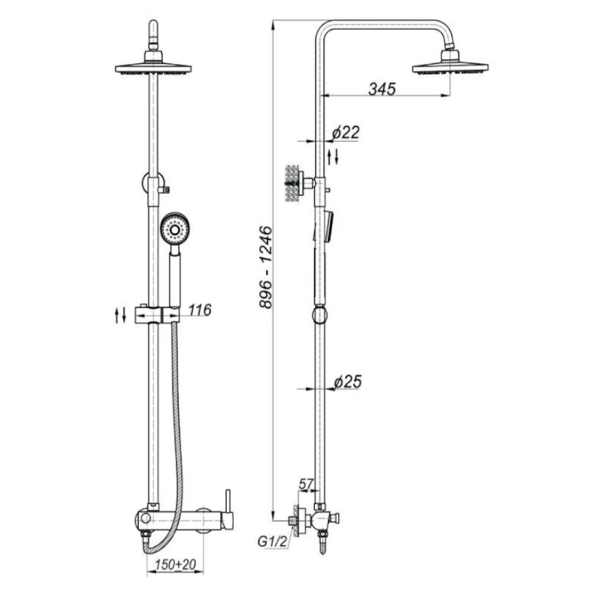 - UCHWYT PRZESUWNY z możliwością regulacji wysokości natrysku ręcznego