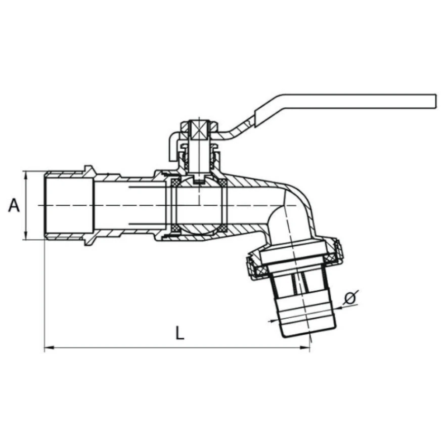 DIAMOND ZAWÓR KULOWY Z RĄCZKĄ - KRAN CZERPALNY HISZPAN Z DŁAWIKIEM, DN25 1" PN10