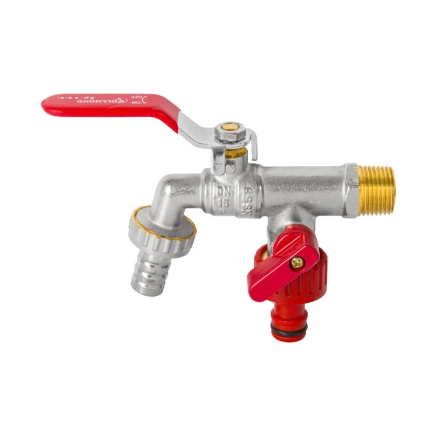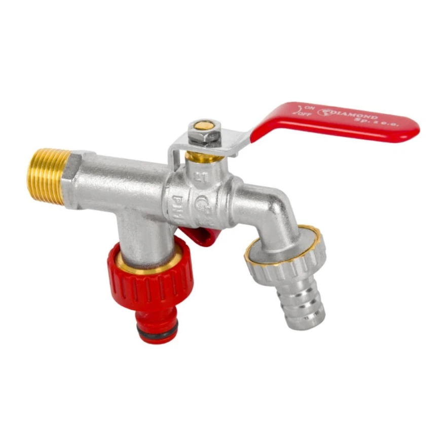 DIAMOND ZAWÓR KULOWY Z RĄCZKĄ - KRAN CZERPALNY PODWÓJNY Z DŁAWIKIEM, DN15 1/2" PN10