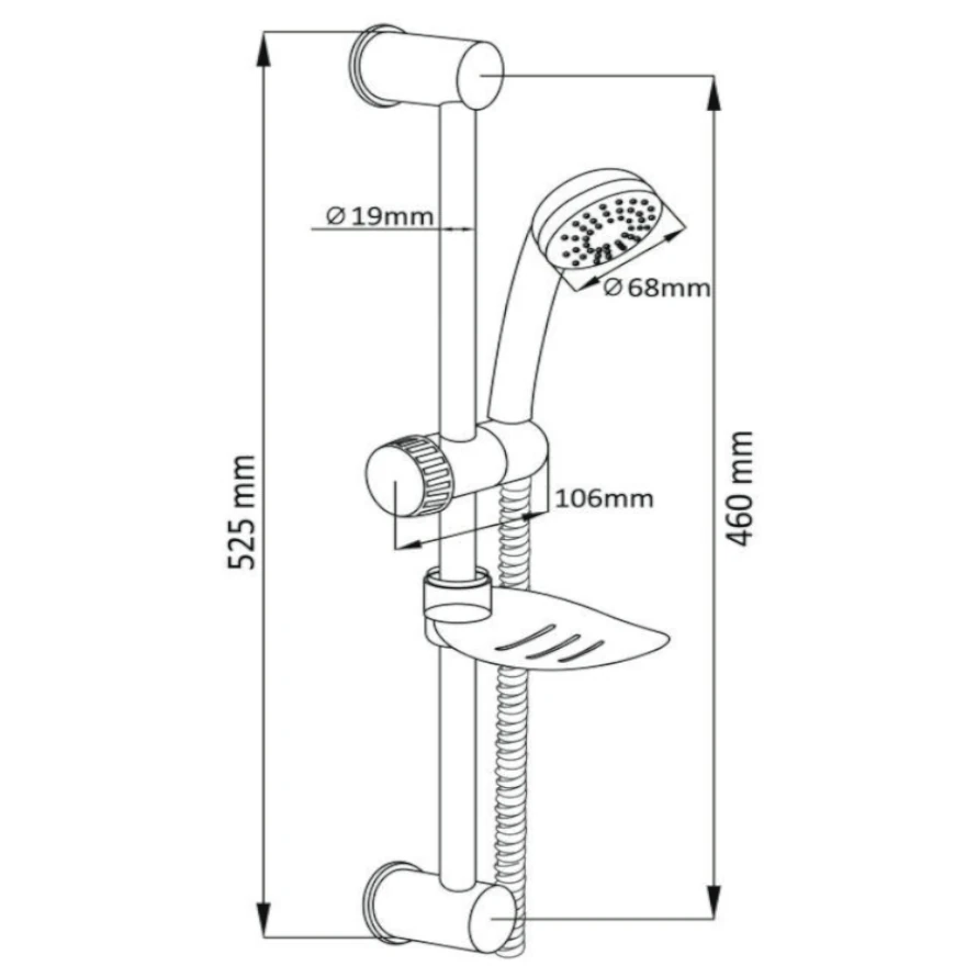 - Drążek przesuwny i uchwyt z możliwością regulacji wysokości rączki natryskowej