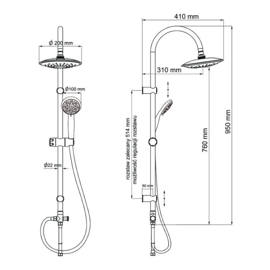 - UCHWYT PRZESUWNY z możliwością regulacji wysokości natrysku ręcznego