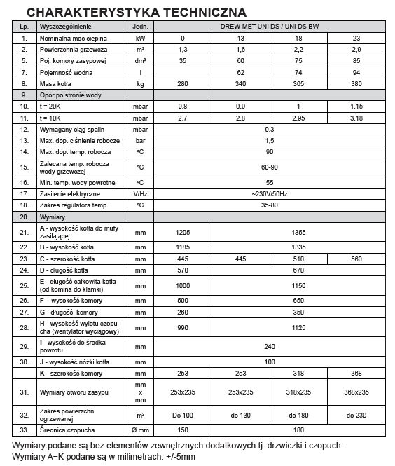 UWAGA! Dla kotłów UNI DS / UNI DS BW wymagana jest współpraca ze zbiornikiem akumulacyjnym.
