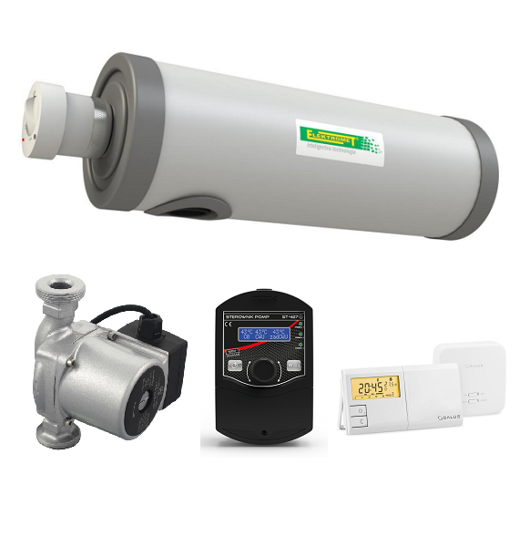 ELEKTROMET MDC 400/9 PRZEPŁYWOWY DOGRZEWACZ DO UKŁADU C.O 400 V 6 KW ZESTAW (dogrzewacz przepływowy 9kW 3fz; pompka ob. LPS; sterownik ST-427I; reg. pokojowy bezprz. Salus)