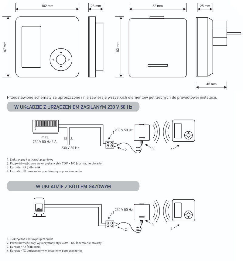 - Możliwość współpracy z maksymalnie 6 odbiornikami Euroster RX,