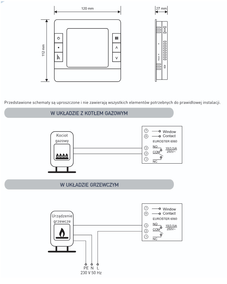 | Wyposażenie | regulator temperatury Euroster 6060, kołki rozporowe, baterie, instrukcja obsługi z gwarancją |