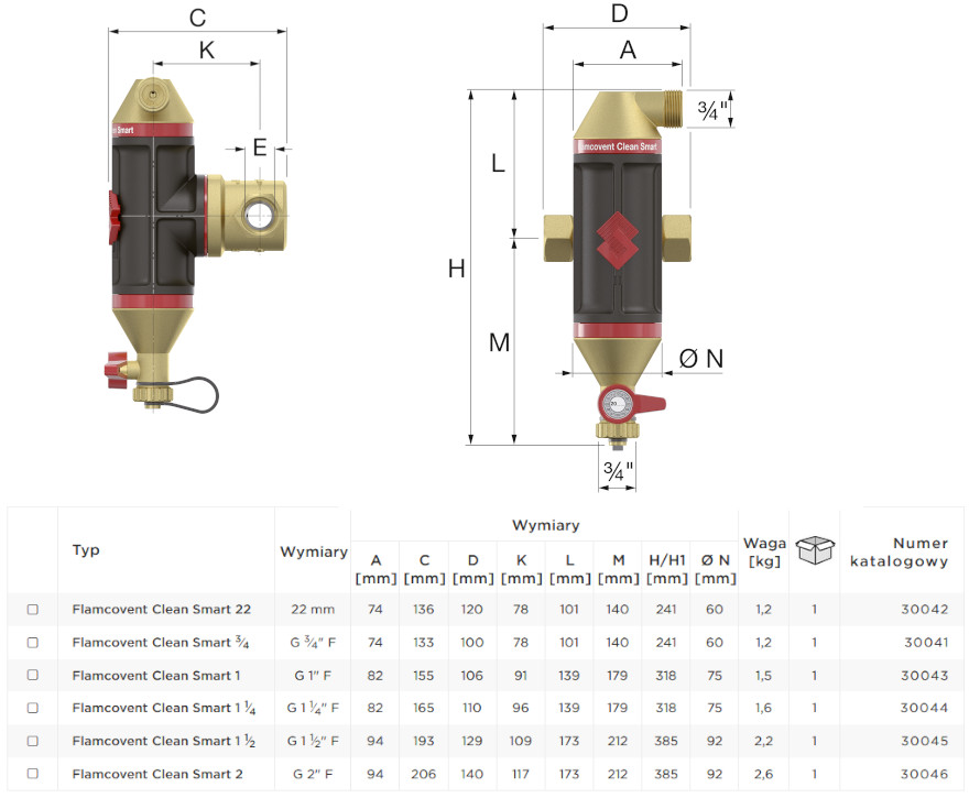 FLAMCO FLAMCOVENT CLEAN SMART SEPARATOR POWIETRZA I ZANIECZYSZCZEŃ DN32 G 5/4" F 30044