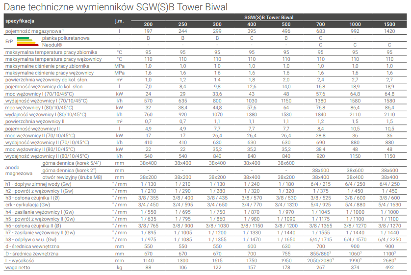 Tower Biwal, to pierwszy z serii wyjątkowych wymienników biwalentnych, z dwoma wężownicami spiralnymi, pozwalających na maksymalne wykorzystanie zasilania z kilku źródeł ciepła jednocześnie. Szeroki wachlarz pojemności, od 200 do 1500 litrów, sprawia, że znajduje on zastosowanie, zarówno w domach jednorodzinnych jak i dużych budynkach użyteczności publicznej.