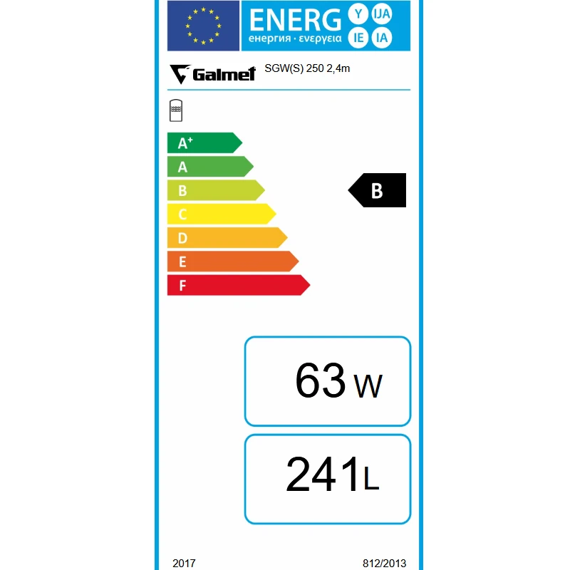 | Klasa efektywności energetycznej podgrzewania wody | B |