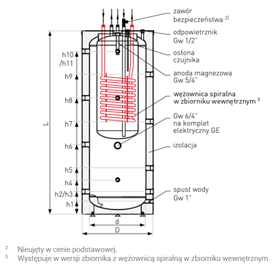| Materiał płaszcza zbiornika | stal malowana proszkowo - emalia ceramiczna nakładana metodą na mokro - EXTRA GLASS® |