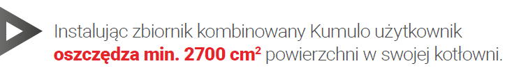 Zbiornik kombinowany Kumulo z dwiema wężownicami spiralnymi, to najwydajniejszy sposób na szybkie ogrzewanie wody użytkowej, przy jednoczesnym wspomaganiu ogrzewania c.o. Konstrukcja typu zbiornik w zbiorniku pozwala magazynować ciepło pochodzące z różnych źródeł i wymieniać je między systemami c.o. i c.w.u. Zamiast dwóch urządzeń typu wymiennik c.w.u. i bufor c.o. instalowany jest kombinowany zbiornik akumulacji ciepła co pozwala na znaczną oszczędność miejsca. Gwarantuje to również wysoki komfort ogrzewania wody i najwydajniejsze wykorzystanie pozyskanego ciepła.
