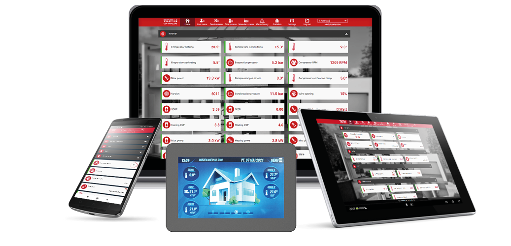 - Kolorowy panel dotykowy + kompletne sterowanie online