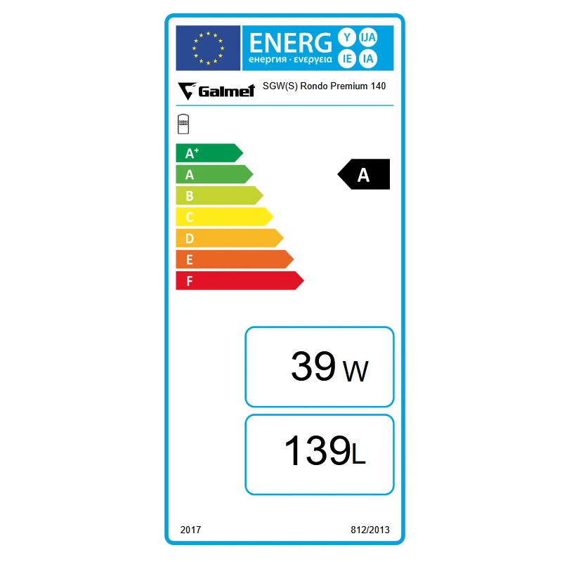 | Klasa efektywności energetycznej podgrzewania wody | A |