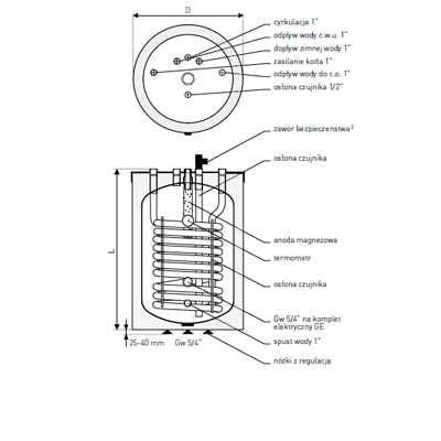 | Materiał płaszcza zbiornika | stal malowana proszkowo - emalia ceramiczna nakładana metodą na mokro - EXTRA GLASS® |