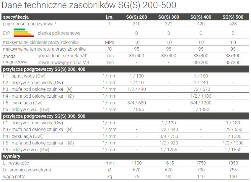| Materiał płaszcza zbiornika | stal malowana proszkowo - emalia ceramiczna nakładana metodą na mokro - EXTRA GLASS® |