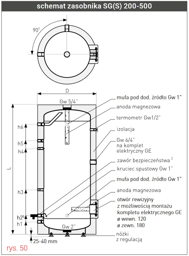 GALMET SG(S) ZASOBNIK C.W.U. WOLNOSTOJĄCY BEZ WĘŻOWNIC 400 L POLIURETAN SKAY WARIANT N