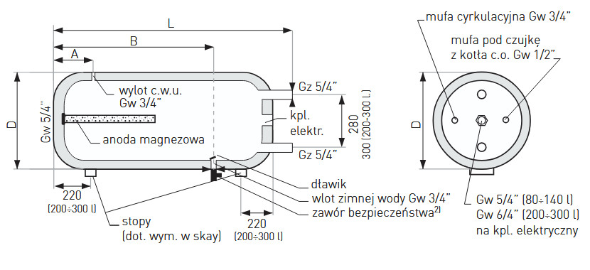 | anoda magnezowa górna | mm | 33x200 | 33x200 | 33x250 | 33x250 |