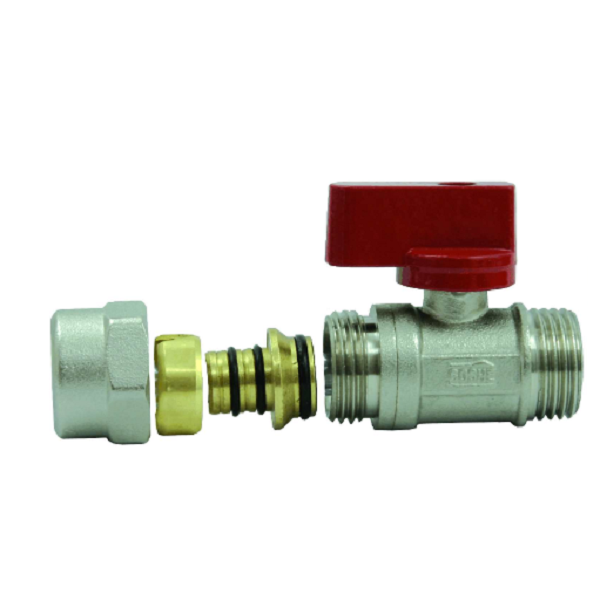 GOSHE ZAWÓR KULOWY MINI ZE ZŁĄCZKĄ NA RURĘ PEX MOTYL CZERWONY 0200.044