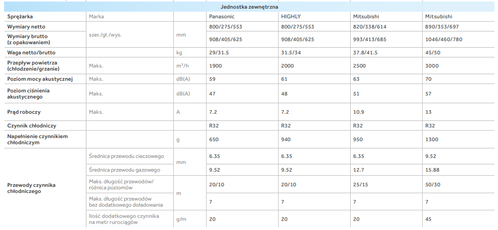 | Przeznaczenie | chłodzenie i grzanie |
