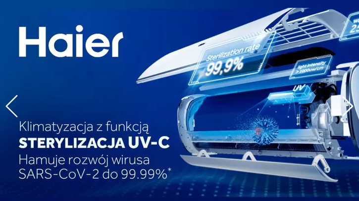 - Certyfikat TEXCELL - Technologia Sterylizacja UV-C zastosowana w klimatyzatorach Haier pełni funkcję hamowania rozwoju wirusa (SARS-CoV-2)w oparciu o wyniki laboratoryjnego badania wydajności lampy UV-C (badanie: Non-GLP VIRAL CLEARANCE STUDY – FIO). Testy zostały przeprowadzone przez Texcell, globalną organizację zajmującą się przeprowadzaniem badań na zlecenie. Texcell zweryfikował i potwierdził skuteczność tej technologii na poziomie 99.998%, w przestrzeni o kubaturze 45 litrów, w czasie 1 godziny.