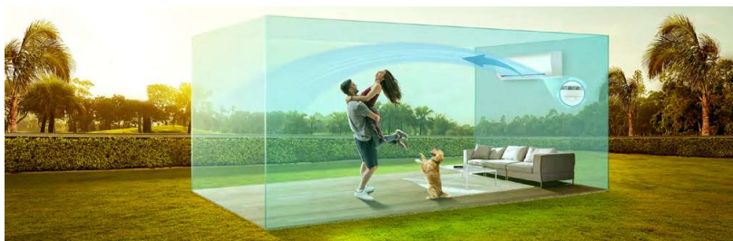 Funkcja Coanda Plus sprawia, że nawiew z klimatyzatora jest silniejszy oraz osiąga większy zasięg docierając do każdej części pomieszczenia.