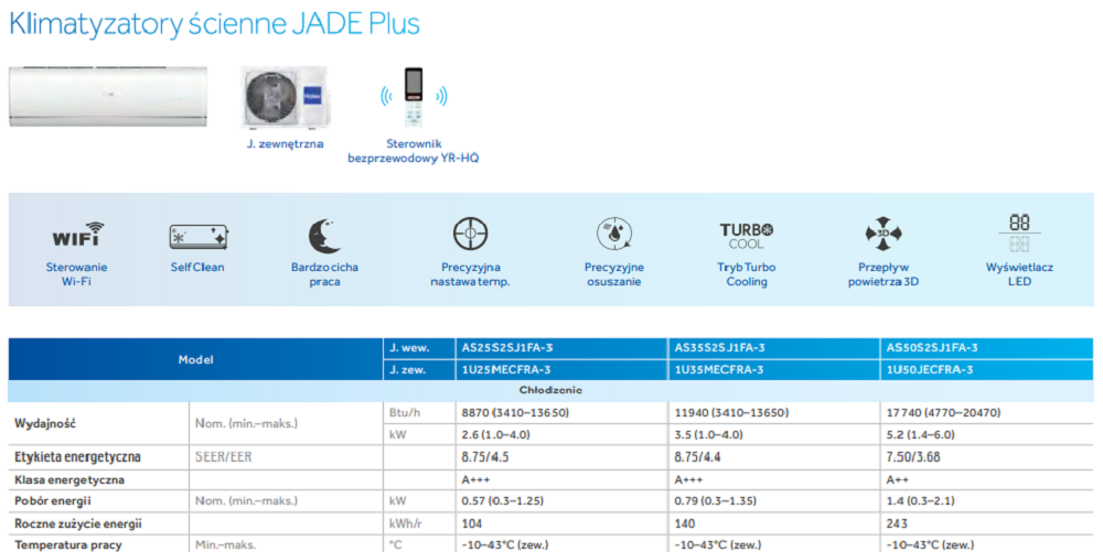 HAIER JADE PLUS (R32) KLIMATYZATOR ŚCIENNY 5,2/6 KW AS50S2SJ1FA-3/1U50JECFRA-3