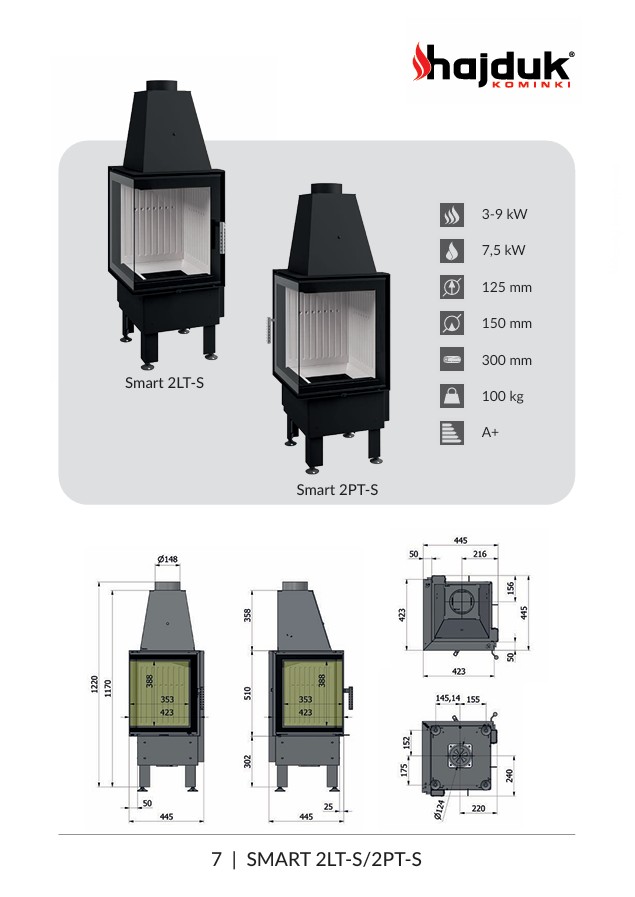 HAJDUK WKŁAD KOMINKOWY SMART 2LT-S 7,5Kw 510 LEWY