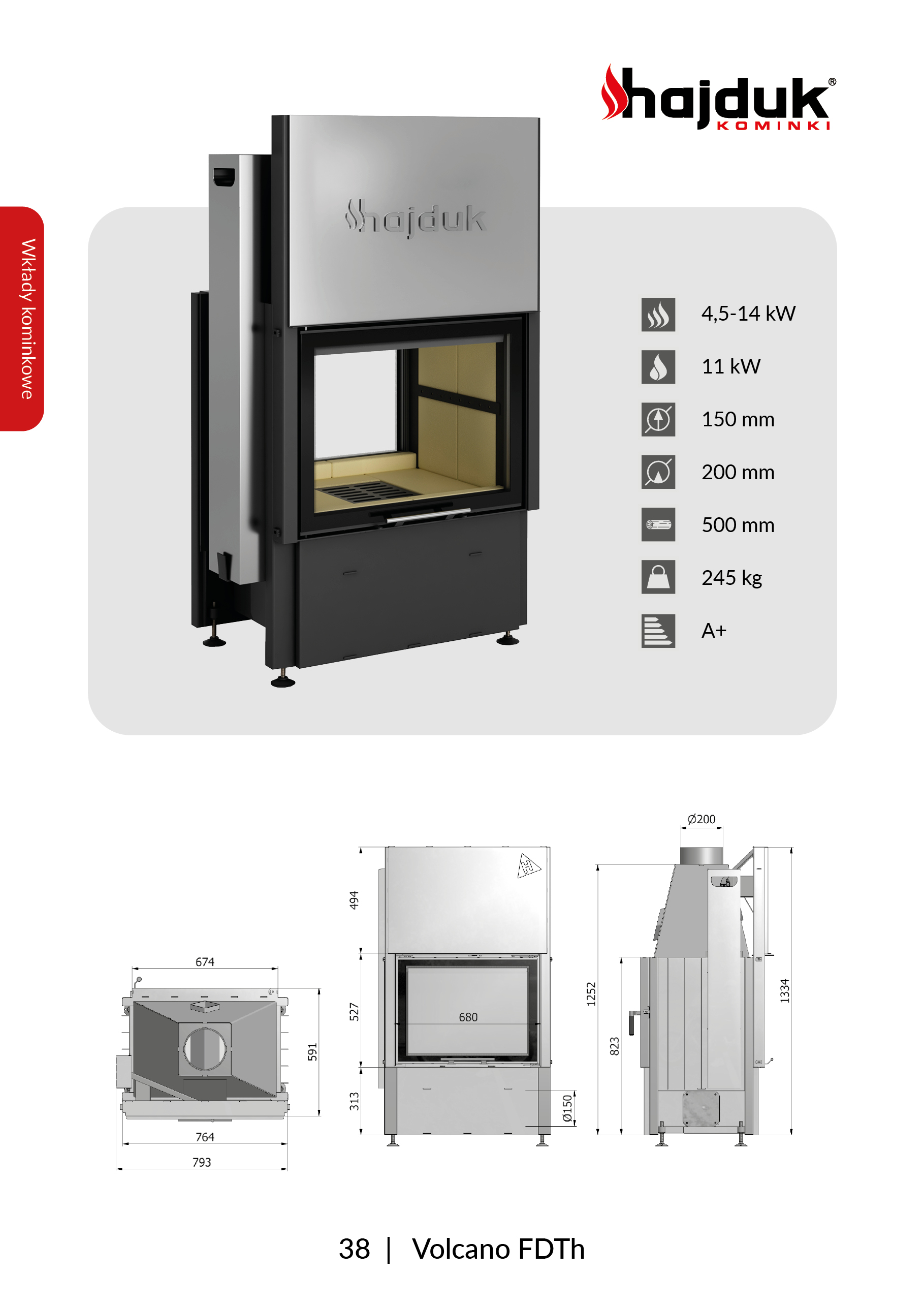 HAJDUK WKŁAD KOMINKOWY VOLCANO FDTh 11kW 510