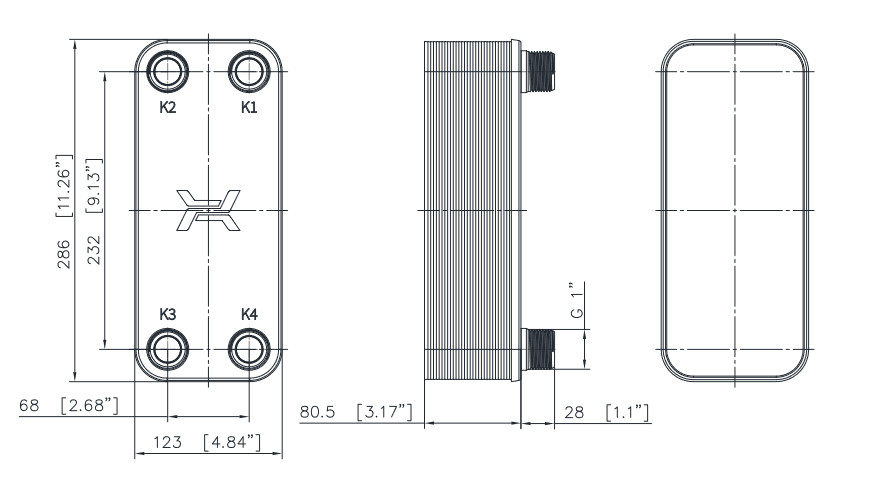 - K1 - wlot czynnika grzewczego