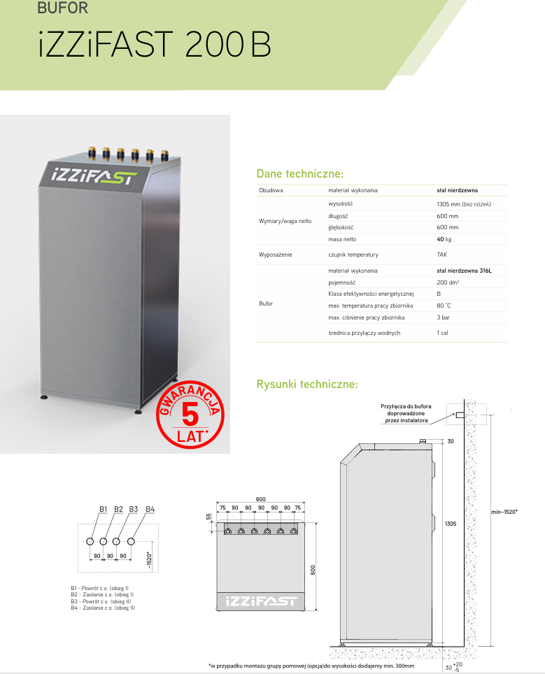 IZZIFAST 200B BUFOR 200 L DO WSPÓŁPRACY Z SZAFAMI HYDRAULICZNYMI