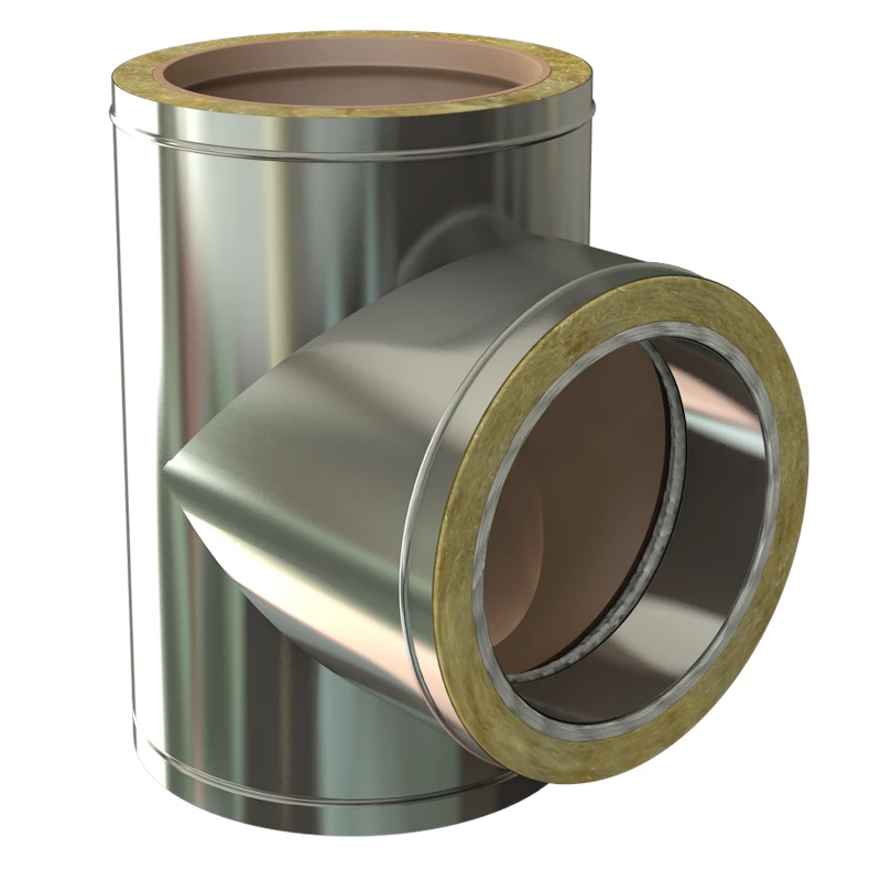 Trójnik przyłączeniowy CERASTAL o kącie 90°. Płaszcz wewnętrzny: ceramika izostatyczna; izolacja glinokrzemianowa; płaszcz zewnętrzny z blachy nierdzewnej 0,6mm; dostępne średnice płaszcza wewnętrznego: 120, 140, 160, 180, 200, 250mm;