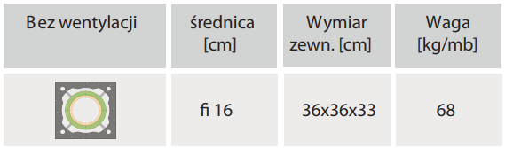 | Wymiar zewnętrzny komina (mm) | 360 x 360 |