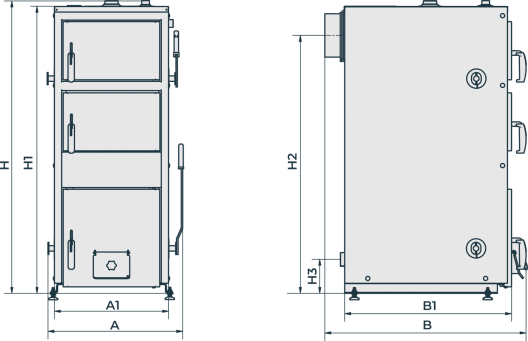 | Gł. obudowy kotła z drzwiczkami (B1) | mm | 600 | 690 | 690 | 690 | 690 |